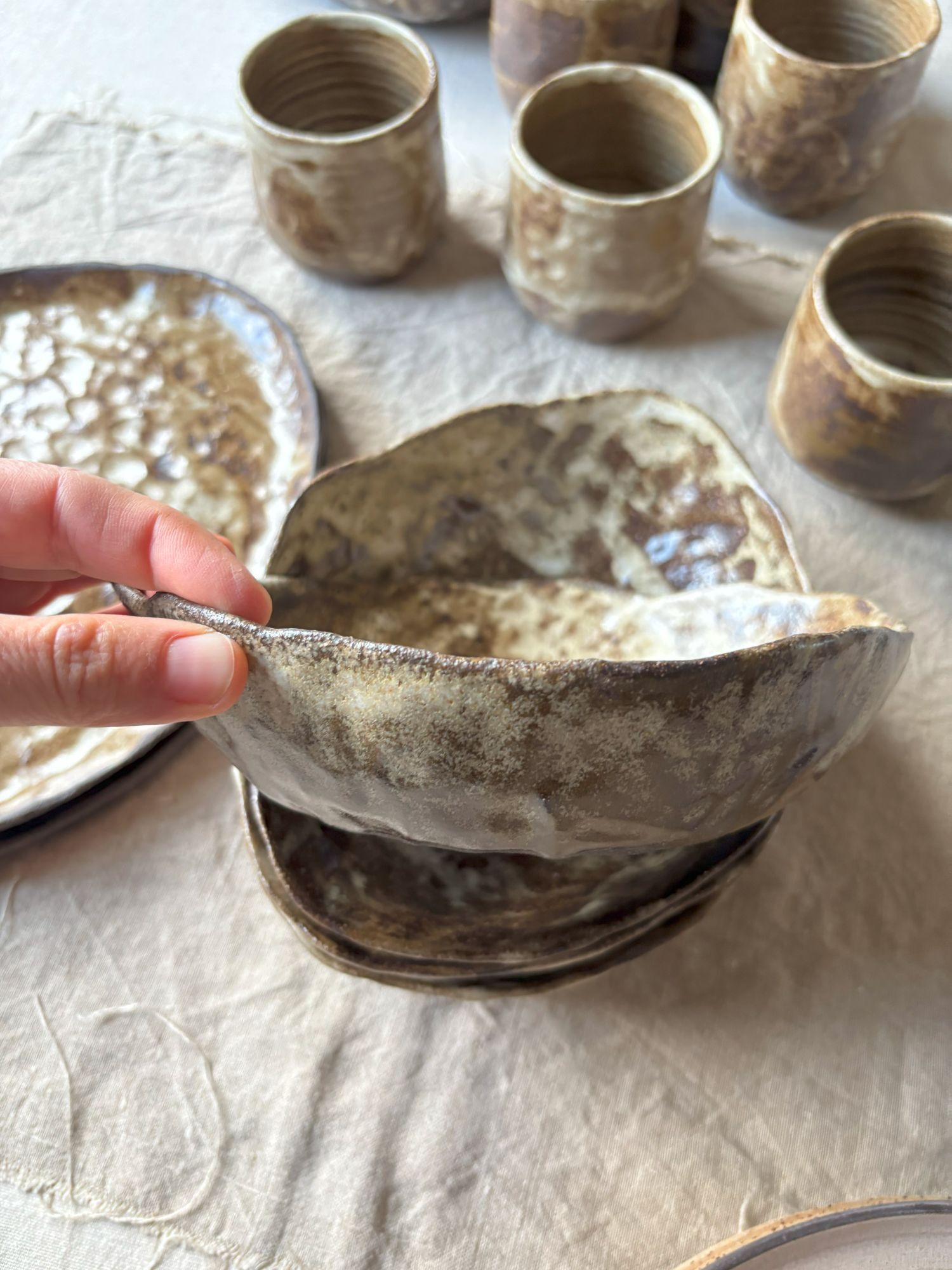 Ręcznie lepiona miska o owalnym kształcie, stworzona do podawania rozgrzewających zup lub dań jednogarnkowych. Porcja idealna na jesienne chłody.