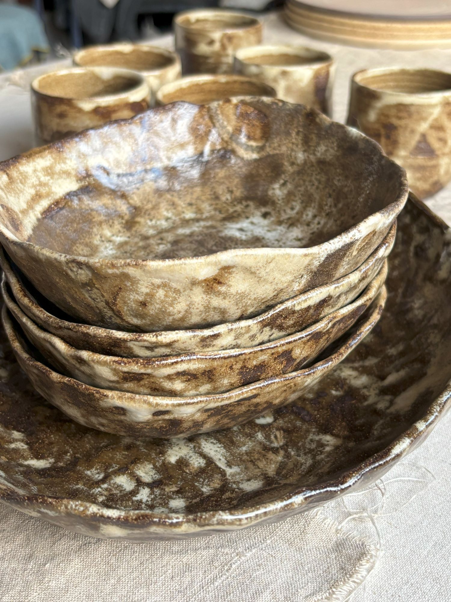 Naczynia ulepione metodą " z kuli" mają nieregularne kształty i noszą licznie ślady palców, co daje im niepowtarzalny charakter. Szkliwienie pędzlem dodatkowo go podkreśla.